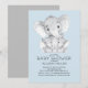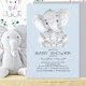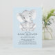 Elephant Giraffe baby shower invitation featuring grayscale mom & baby twin elephants set on a blue background for a boys, girls or gender neutral twins baby shower. Flip our invite over to view a coordinating grey background for an extra special touch. Visit our shop to view matching items.