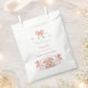 A charming thank you card featuring two fairy girls, a whimsical magic mushroom, and a sweet pink ribbon with a hint of light mint green. Perfect for celebrating twins! Customize now for your special event.