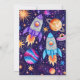 This double celebration 'first trip around the sun' baby boy's birthday invitation is ideal for twin siblings. The front features two astronauts with spots to add your own photos into the helmets. The background is full of planets, the sun, shooting stars and lots of stars on dark purple. On the back is an image of two rockets with galaxies, planets and more stars. You can customise all the text in this design. See the whole matching collection.
