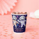 This joint first birthday 'first trip around the sun' design features two astronauts floating in space surrounded by stars, planets, and shooting stars, on the back of the cup are two rockets on a dark purple background. This design is ideal for a twins first birthday but can be fully customisable to suit any age of any event. See the whole matching collection.
