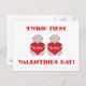 Cute little twins hold up signs saying ÒBe MineÓ and declare ÒTwins First ValentineÕs DayÓ
