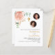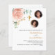 For the confirmation of 2 girls, sisters. A white background decorated with eucalyptus greenery and golden leaves and a rose gold flower. Personalize and the girls names, photos and ceremony details. Black and golden coloured letters.