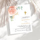 For the confirmation of 2 girls, sisters. A white background decorated with eucalyptus greenery and golden leaves and a rose gold flower. Personalize and the girls names and the details. Black and golden coloured letters.