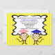 Who's Graduating Kindergarten or Preschool??? Your little Monkeys!! The Perfect invitation for twin boys! This adorable invite has a bright yellow striped background. There's a white centre tag outlined in black with small white dots on it. On the bottom in the centre of this invitation is a cute monkey holding a diploma. The monkey has a pink graduation cap on her head and next to her is another monkey wearing a bright blue cap. Personalize with party information and you're ready to go. Check out our many other designs and colours in our store. ©Riefka