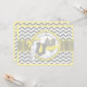 Chic grey and white chevron print with yellow contrast and a cute polka dot jumper with tie and tutu and 3D-look bow and ribbon for twins boy and girl baby shower invitation card.
