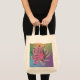 A feather like fractal with feather's twirling around a centre anchor. Delightful colours on a practical shopping bag