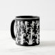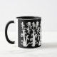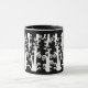 A mug with a pattern design made up of decorative twirly plants. A hard edged vector design.