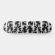 A skateboard with a pattern design made up of decorative twirly plants. A hard edged vector design.