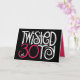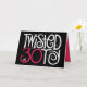Hand-drawn digital design: "Twisted at 30ty" in white text against a black background. Turning 30? Or know a family member or friend who is? Here’s the perfect fun, cheeky gift to wish them a terrific, Happy 30th Birthday. Or an excellent invitation to a celebration and as party presents! Also a lovely matching stamp, sticker, magnet, t-shirt.