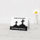 A bizarre card featuring a cemetery silhouette with tombstones in black and white on a brithday card with a strange insulting greeting.