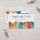 Hand drawn twisted yarn hank or skein of yarn in bright colours with crochet hooks on business cards or l 'handmade with love' gift tags, product tags or hang tags for crocheted or yarn crafts.