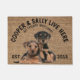 This welcome mat can be personalized with your dog’s name, the slogan can also be changed or you could use a picture of your own dog (make sure it's transparent). Text reads: Cooper & Sally Live Here…. All treats welcome.