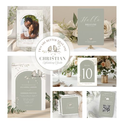 Inspired by the scripture “Two are better than one” – Ecclesiastes 4:9, this invitation reflects the beauty of two lives joined together in faith. The calming sage palette, airy watercolour details, and minimalist botanical accents create a serene and romantic aesthetic perfect for Christian weddings, church ceremonies, and nature-inspired celebrations.