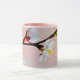Two beautiful white Japanese apricot flowers against the pink background. The beauty of the spring season. Customizable two-sides printed template text. You can change or delete the text. You can also transfer this design to a variety of drinkware products. Just choose the one from the "Transfer design to a product" scrollable line. To change the font colour, the position, or the type of the font, please, use the "Edit Design" button or "Click to customize further" link under "Personalize this template" option. The "Edit Design" tool gives you the "Fit/Fill" option to spread the image all over the printable area of a product. Elegant coffee mug for you or a gift for your friends or beloved.