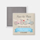 Bicycle weddings are a fun, new trend in themed weddings. On this faux linen background save the date magnet, two bicycles meet and create a small heart to symbolize the married couple-to-be. The bride's bike has a wedding veil on the seat and a bouquet in the basket. The groom's bike has an untied bow tie wrapped around the handlebars. The couple's names stand out in a sky blue banner below. Perfect for a bicycle themed or any outdoor wedding. Available in alternate colours with a tandem bike option.