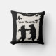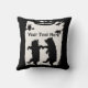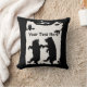 This throw pillow is done in black and white with two bears dancing together in the woods under trees in the grass with an owl watching them from a tree. Customise your text with the template on the front and back.