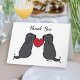 Two Black Labradors with Heart Thank You Greeting Card. Unique and funny Labrador Retriever Art painted by Naomi Ochiai from Japan. Two adorable Black Labradors holding a heart in their mouths. Sweet Thank You card design.