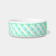 Pamper your pet with this bowl design featuring a blue and green linked heart pattern over a white background. Fill in the template field with your pet's name or make it a great gift idea for a new pet owner.