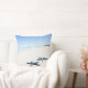 Two blue starfish at water's edge on tropical 2 throw pillow