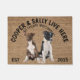 This welcome mat can be personalized with your dog’s name, the slogan can also be changed or you could use a picture of your own dog (make sure it's transparent). Text reads: Cooper & Sally Live Here…. All treats welcome.