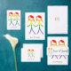 These place cards feature a sweet and heartfelt design to guide guests to their seats at your wedding reception. The graphic depicts two women, in the form of elegant stick figures, holding hands. The figures are coloured in a beautiful rainbow, symbolizing love and diversity. These cards are a wonderful way to bring a cohesive and meaningful touch to your tablescape while celebrating your union with every detail.