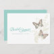 Double-sided graphic butterflies on swirl stylized wild flowers wedding bridal shower invitation. Part of two butterflies wedding stationary set. Pretty in white, mint, brown and pink shades. Edit this wedding bridal shower invite with your own name, dates, and wording . Simple modern and romantic wedding bridal shower invitation. Inked swallowtail and painted lady butterfly art and stylized graphic wild flowers by Sarah Trett.