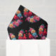 Vibrant illustration featuring two cardinals among colourful roses and hearts, symbolizing love and beauty, against a black background.