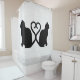 The perfect bathroom décor for cat lovers is a shower curtain all about love and cats. This all black silhouette of two cats is romantic, cute, and adorable. For an eccentric feline aficionado, crazy cat lady, or kitten obsessed little girl. The cats identically curled tails come together to form a heart. You can customize the background colour to match your décor as well.