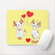 A Cute Yellow And Red Mouse Pad Of Two Bi Colour Cartoon Cats With Heart Shaped Balloons You Can Personalize