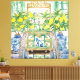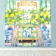 Watercolor painting of two cheetahs in chinoiserie interior with lemon tree