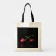 Two Cherries - Two sweet cherries (prunus avium regina) in vivid green and purple photographed against a plain black background.
