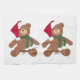 Two Christmas Teddy Bears with hearts on their feet and noses