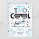 This adorable second birthday invite features sunglasses, palm trees and confetti.
