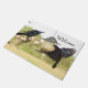 A Doormat with a photograph of two Grackle birds or Crows flying around a bird feeder. The word Welcome can be deleted or changed to different word. This photograph is copyrighted by me, the Photographer.