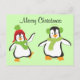 Two Cute Dancing Cartoon Penguins Holiday Postcard