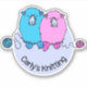 Your name and knitting are teamed with two cute and fluffy cartoon style sheep, one blue and one pink, each with a ball of wool, on this contour sticker. You can change the words and add your name.