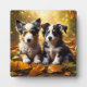 Two Cute Puppies Playing in Fall Leaves Plaque