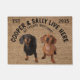 This welcome mat can be personalized with your dog’s name, the slogan can also be changed or you could use a picture of your own dog (make sure it's transparent). Text reads: Cooper & Sally Live Here…. All treats welcome.