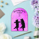 This Frosted acrylic Birthday Party invitation has the silhouette of two happy dancing black bears wearing pink striped party hats with lines of gold sparkle stars on a pink background. Customise all the text with the templates.