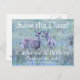 Beautiful Deer in a wildflower meadow photography on this Save the Date Wedding Announcement Postcard.