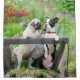 Two dogs a pug puppy and Boston Terrier in a cart