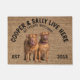 This welcome mat can be personalized with your dog’s name, the slogan can also be changed or you could use a picture of your own dog (make sure it's transparent). Text reads: Cooper & Sally Live Here…. All treats welcome.