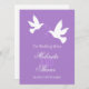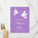 Two doves purple & white wedding dinner menu