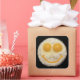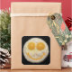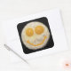 Photograph of two fried eggs in frying pan with digitally added smile to create a face with a smile.