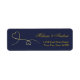 NewParkLane - Elegant Navy Blue Return Address Labels, with elegant script typography and two romantic faux gold swirly hearts.