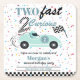 Two Fast 2Curious Blue Sports Car Second Birthday Square Paper Coaster