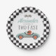 Two Fast Race Car 2nd Birthday plates with blue vintage race car.