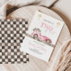 Get set for a thrilling birthday celebration with our pink 'TWO Fast' themed invitation. Showcasing a sleek pink race car and a fluttering chequered flag, this card is perfect for a girl who loves speed. With playful pink fonts and customizable details, it's sure to kickstart an unforgettable, adrenaline-filled birthday party.