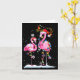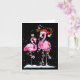 Two Flamingo With Santa Hat And Lights Merry Chris Card