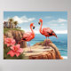 This is an AI generated image. I wanted it to be a pink flamingo on a cliff overlooking the ocean. Some of the flamingo's feathers are black instead of pink.